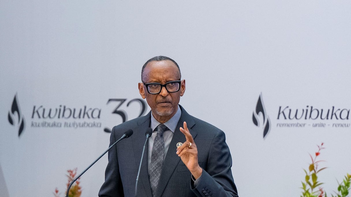 El presidente Paul Kagame pronunciando su discurso en el marco de la conmemoración del 32º aniversario del genocidio contra los tutsi.