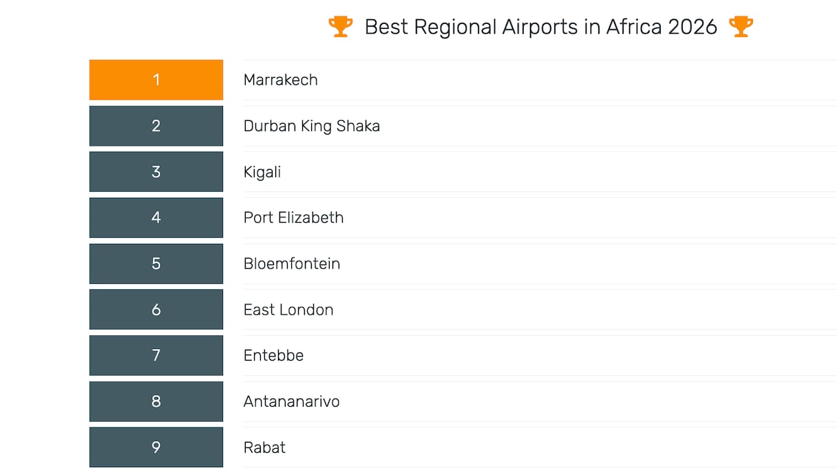 El Top 10 de los «Mejores aeropuertos de África en 2026», según la consultora británica Skytrax.