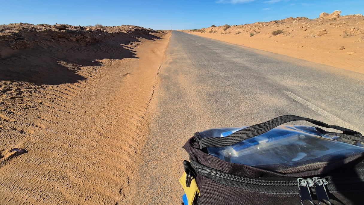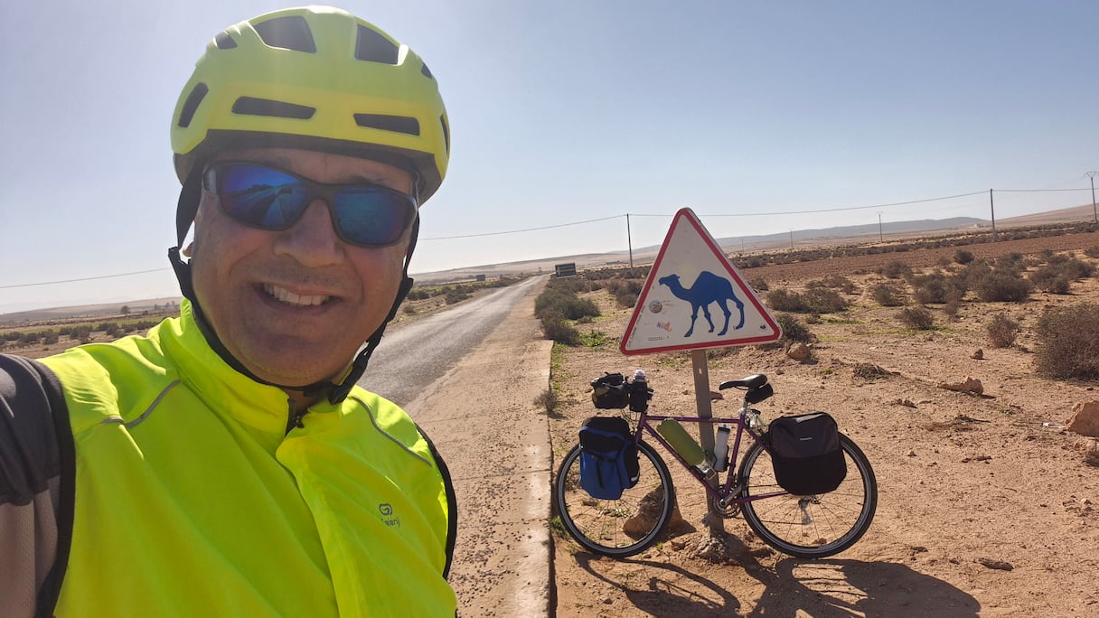 En enero de 2026 decidió llevar esa mirada a un paso más allá. Orihuela se lanzó a uno de sus retos más exigentes: recorrer en solitario cerca de 800 kilómetros entre Agadir y Laayoune en una bicicleta híbrida, con el equipaje mínimo repartido en tres alforjas. Durante diez días atravesó el sur de Marruecos pedaleando en carreteras casi desiertas y pueblos donde el tiempo parece avanzar a otro ritmo, enfrentándose sobre todo a un enemigo constante: el viento del desierto, que en ocasiones superaba los 40 kilómetros por hora.