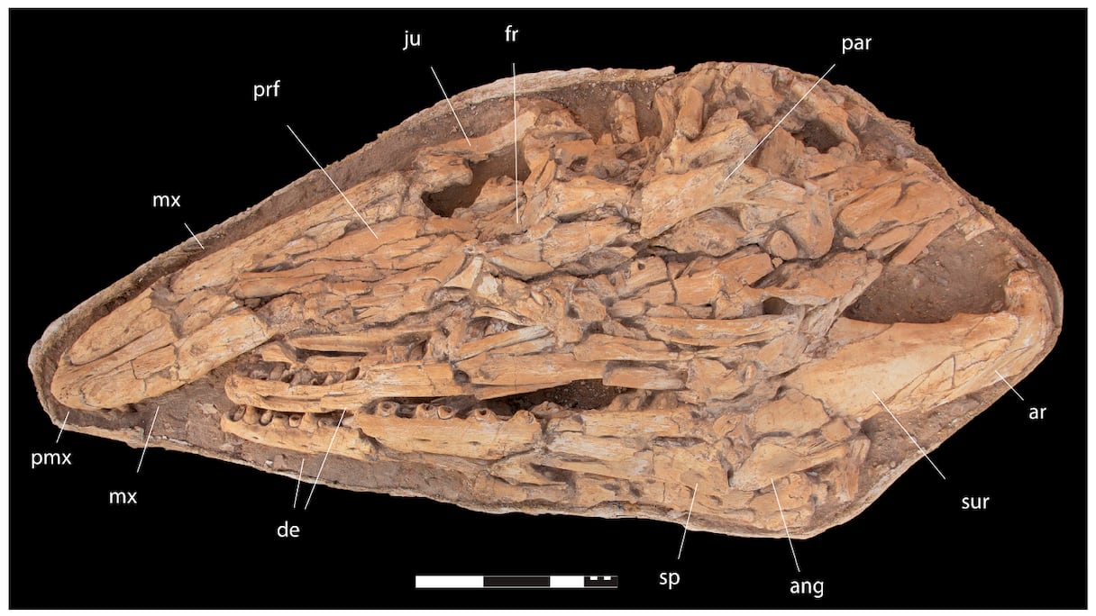Los investigadores también observaron una articulación inusual entre algunos huesos del hocico, así como una forma específica de ciertos elementos de la mandíbula. El conjunto de estas características anatómicas confirma que se trata de una especie distinta de las ya conocidas, nos explica Nour-Eddine Jalil.