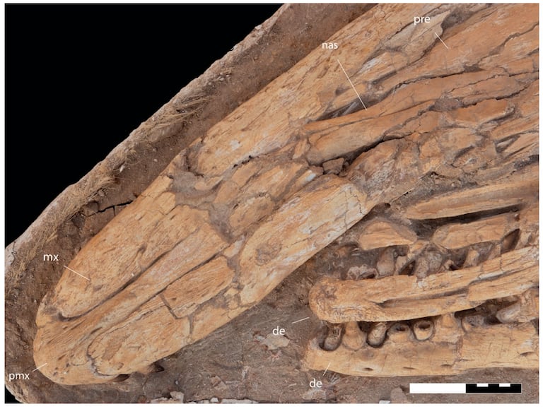 Los investigadores también observaron una articulación inusual entre algunos huesos del hocico, así como una forma específica de ciertos elementos de la mandíbula. El conjunto de estas características anatómicas confirma que se trata de una especie distinta de las ya conocidas, nos explica Nour-Eddine Jalil.