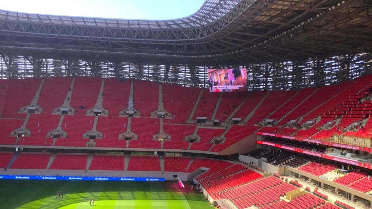 Con su fachada acristalada que favorece la circulación del aire y refleja la luz, asientos en verde y rojo, pantallas gigantes y un sofisticado sistema de iluminación, el estadio presenta una estética claramente orientada al futuro.