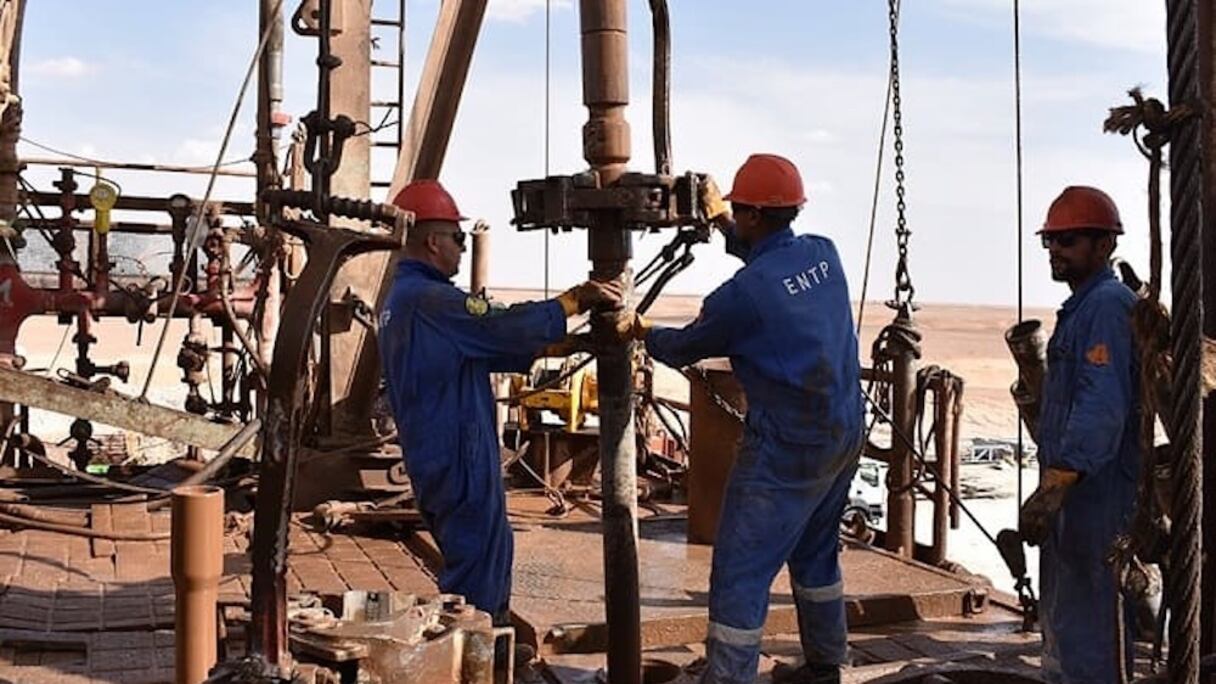 Técnicos de la ENTP operando en un pozo petrolífero en Argelia: símbolo de los desafíos de la volatilidad de precios para los exportadores de hidrocarburos