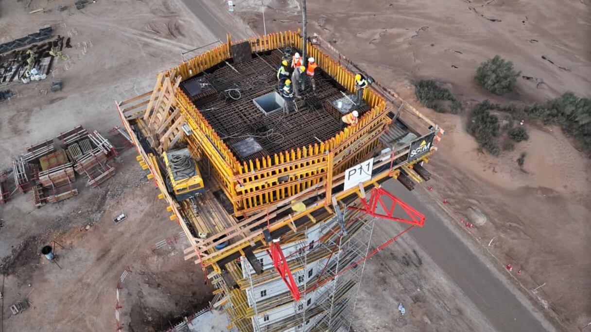 Desde la cima de uno de los imponentes pilares del puente, cuya altura supera los cincuenta metros, el director central de la vía rápida Tiznit-Dakhla, Mbarek Fanch, señala que el grado de avance de esta obra de ingeniería ha alcanzado el 36%. Destaca que el progreso sostenido del proyecto es fruto de una planificación minuciosa y de una movilización constante de recursos humanos y técnicos.