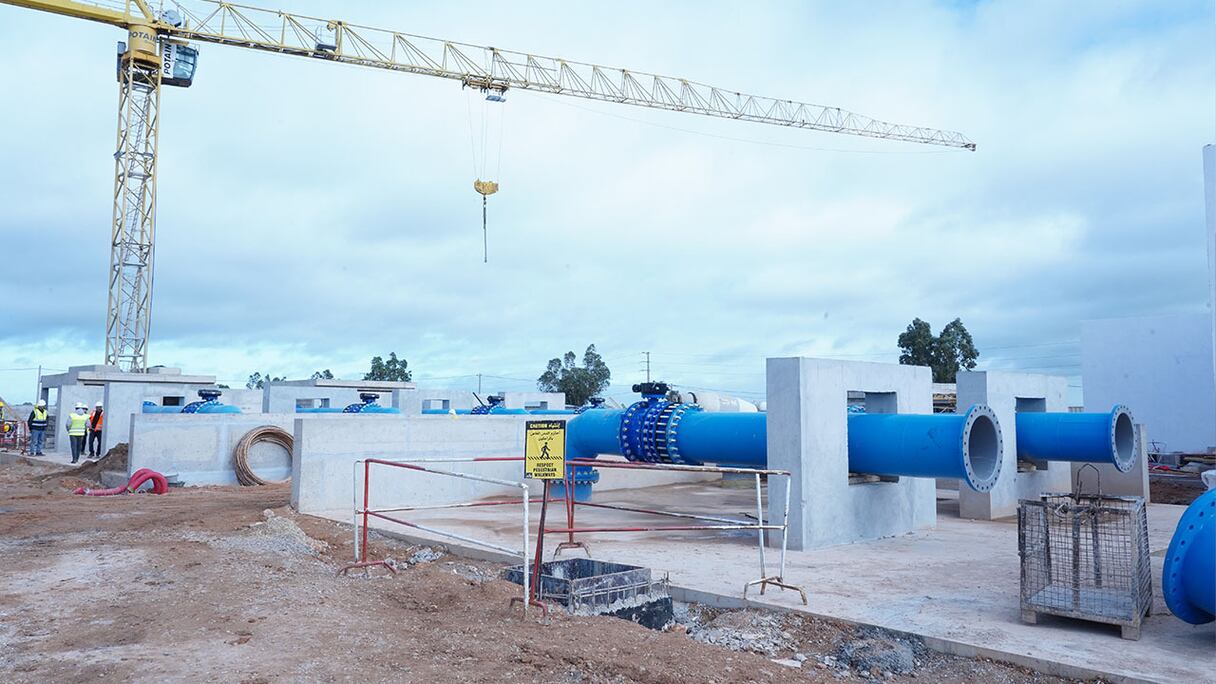 Uno de estos proyectos estructurantes conecta Marrakech con la planta de desalinización de agua de mar de Safi. Se trata de una obra de envergadura nacional destinada a garantizar un suministro seguro y sostenible de agua potable a la región de Marrakech.
