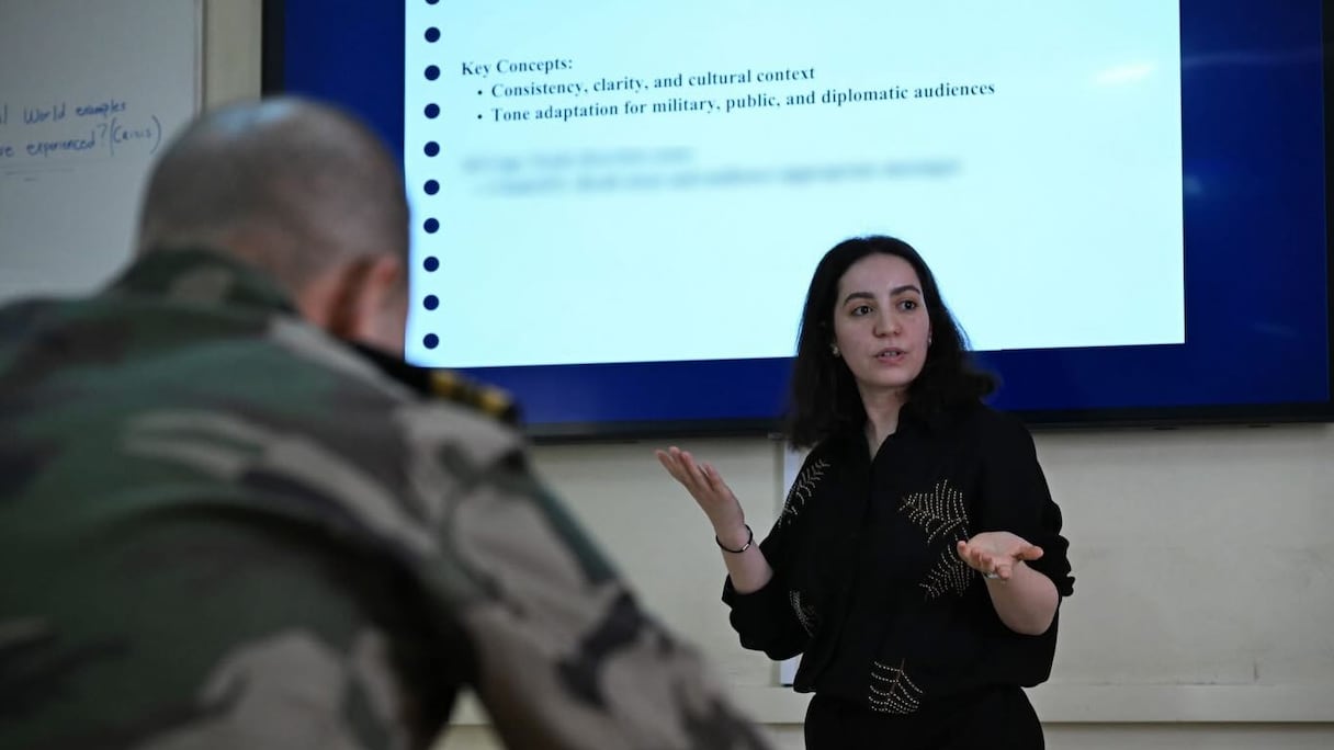 «Hoy estamos formando a las fuerzas asociadas marroquíes en la introducción a la ciberseguridad y en cómo posicionarse eficazmente para la detección de amenazas», explica el primer teniente Mason Elizondo, del Ejército de Estados Unidos e instructor de operaciones en el ciberespacio.