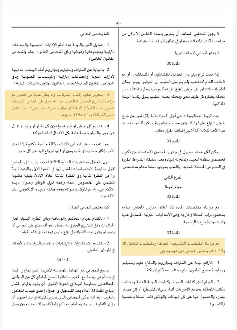 Impulsado por el ministro de Justicia, Abdellatif Ouahbi, el proyecto de ley n.º 66.23 busca oficialmente modernizar la profesión y reforzar su papel en la defensa de los derechos, un objetivo que goza de un respaldo generalizado. Sin embargo, para los profesionales de la contabilidad, la redacción actual del artículo 33 introduce una ambigüedad que podría romper el equilibrio actual.