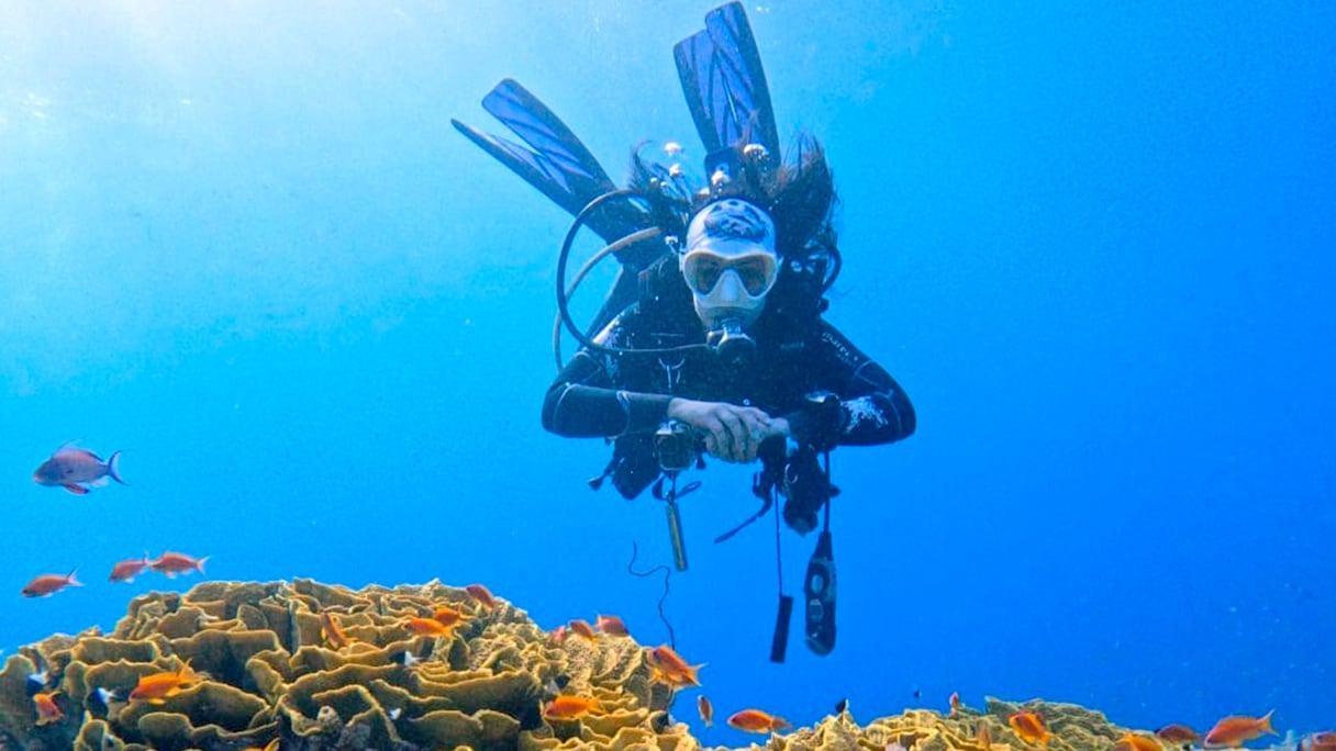 Hajar Bouzaidi dio después un nuevo paso al convertirse en instructora de buceo. Un desafío de otra naturaleza: «Ya no se trata solo de técnica. La pedagogía se vuelve esencial: saber transmitir, acompañar a los principiantes y darles una sensación de seguridad bajo el agua».