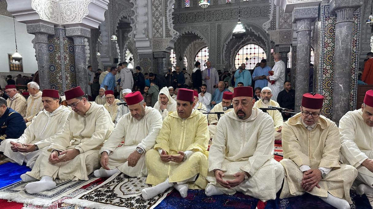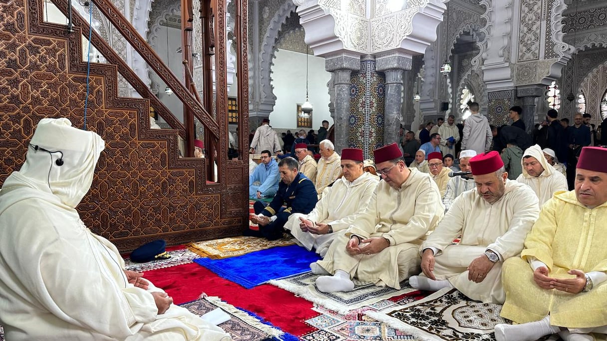 En la mezquita Mohammed V, en la zona de «Iberia», se celebró la «oración oficial» en presencia del wali de la región de Tánger-Tetuán-Alhucemas, junto a una delegación de cargos electos y de personalidades civiles y militares.