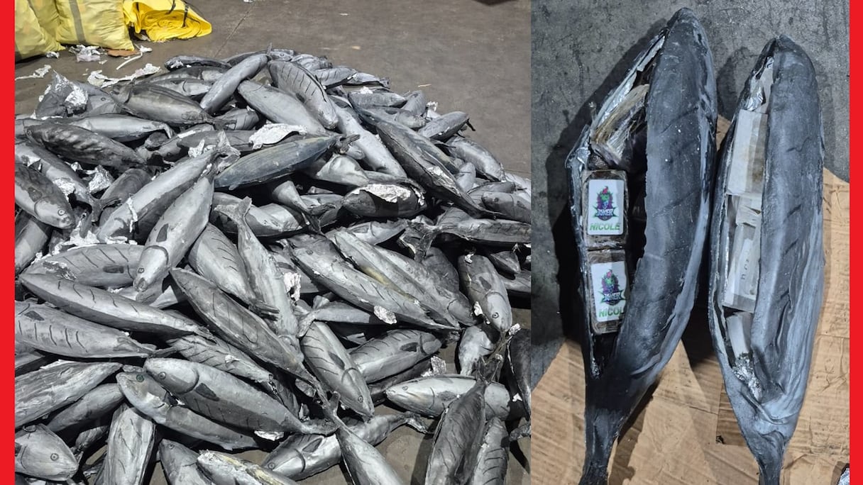 Los agentes descubrieron la carga de droga cuidadosamente oculta en cavidades acondicionadas en el interior de peces congelados, especialmente preparados y envasados para burlar la vigilancia de los controles fronterizos.